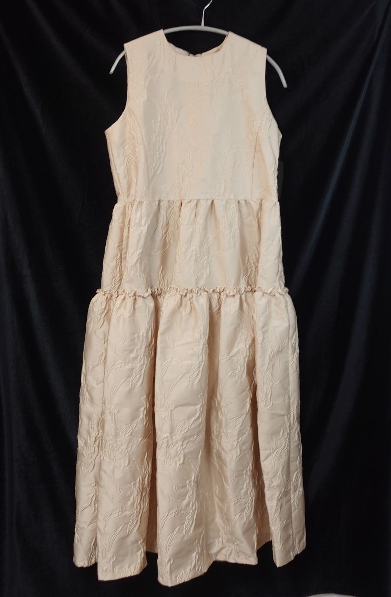 an[アン] フリルツイードロングワンピース フロントジップ背中あきマキシ丈ワンピースドレス